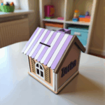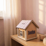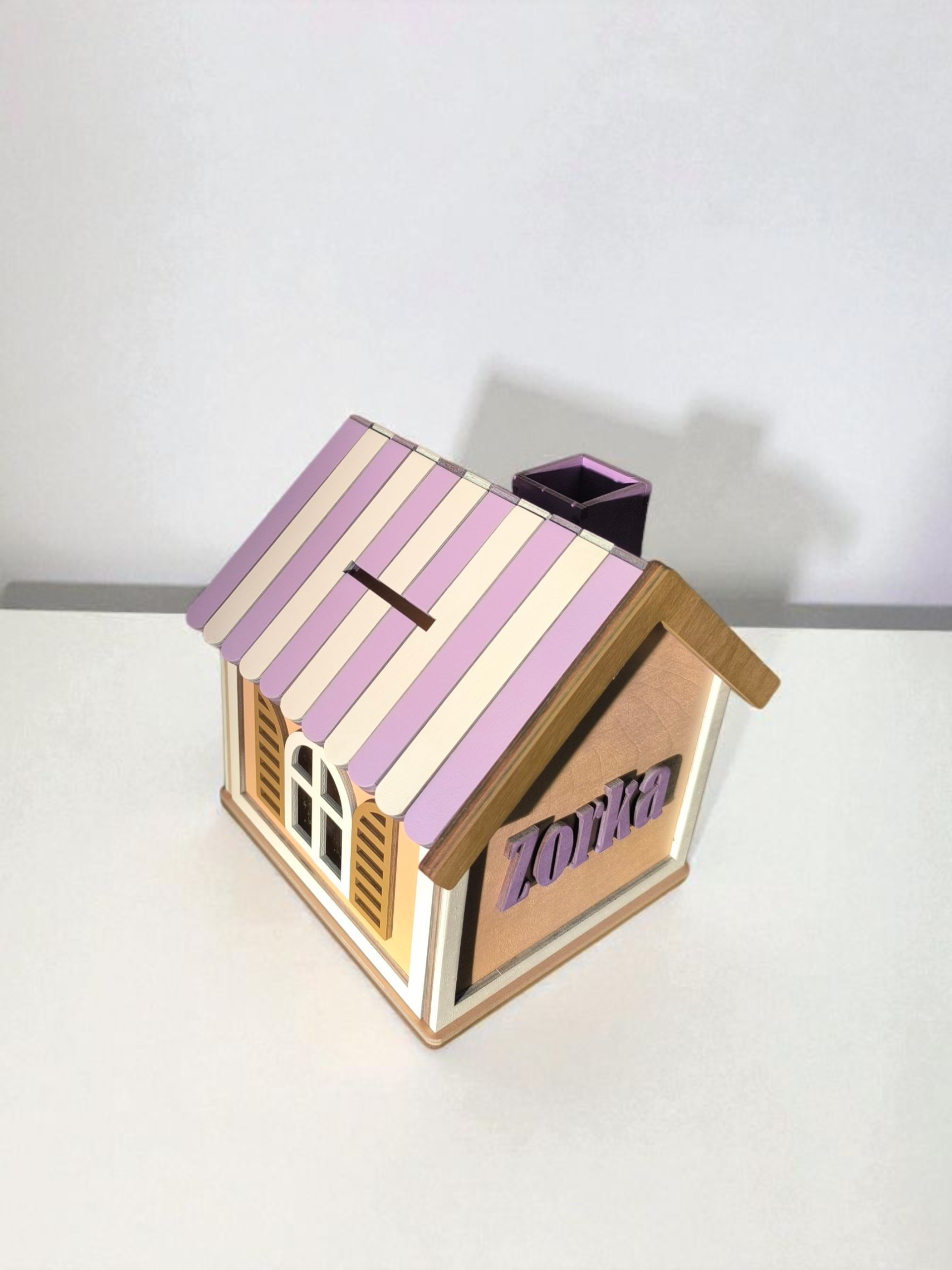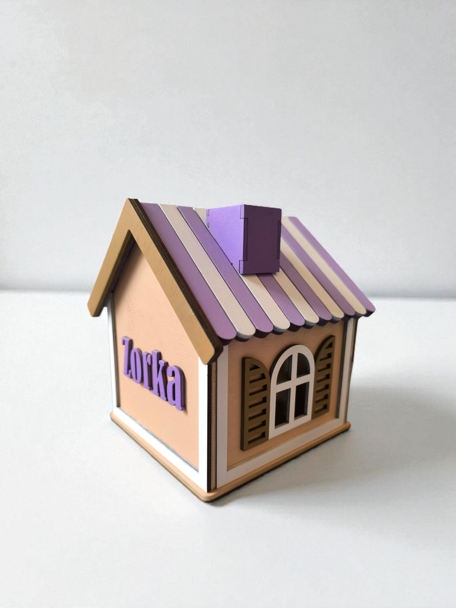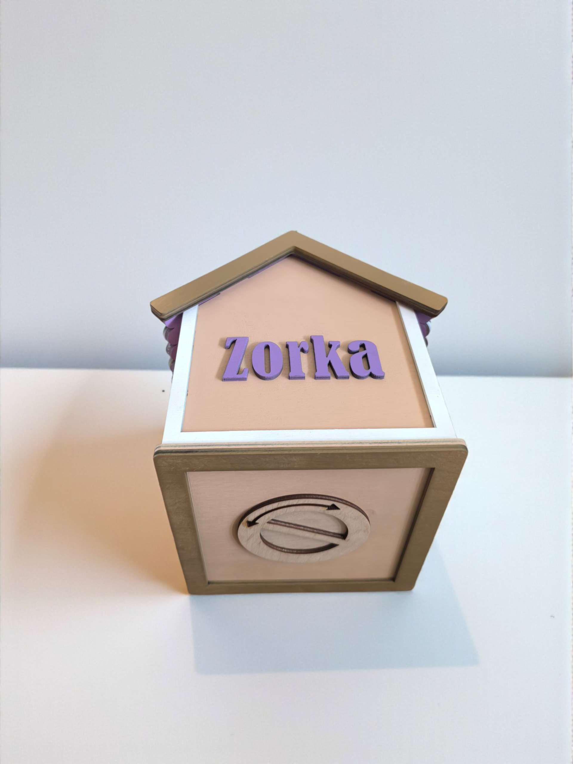 Bájos, névre szóló házikó persely, ahol a kis álmodozók örömmel gyűjtik saját kincseiket!