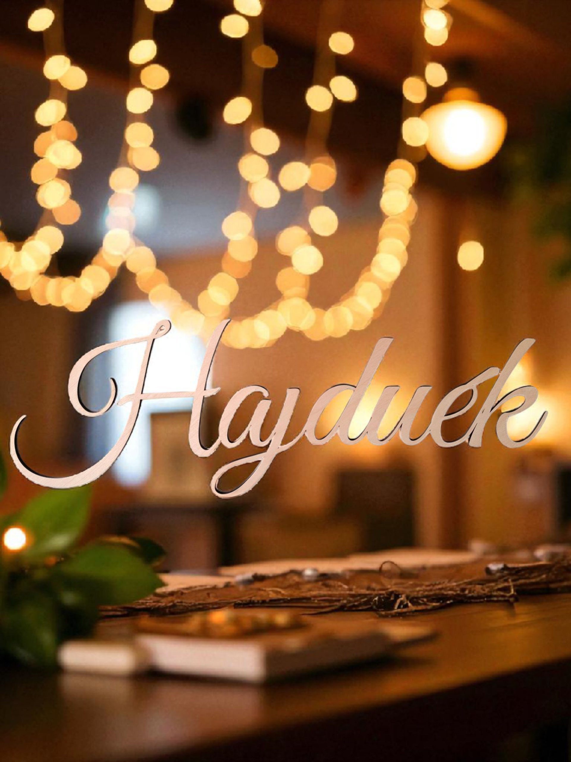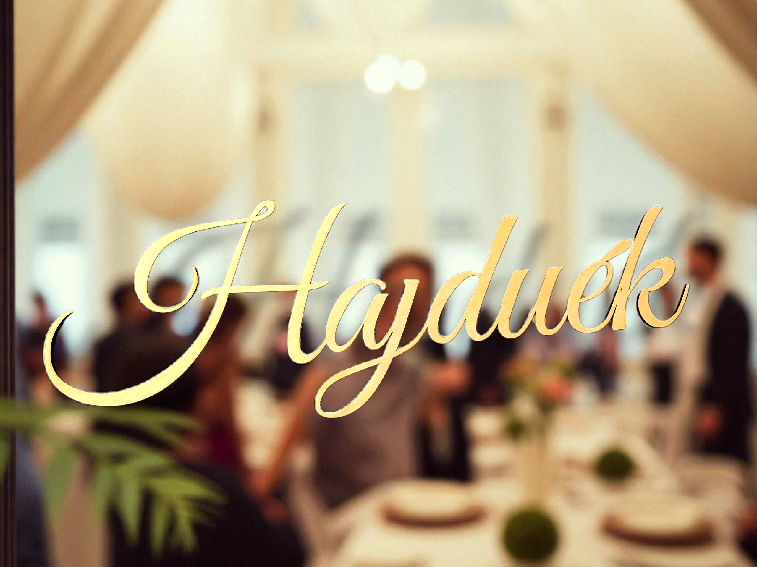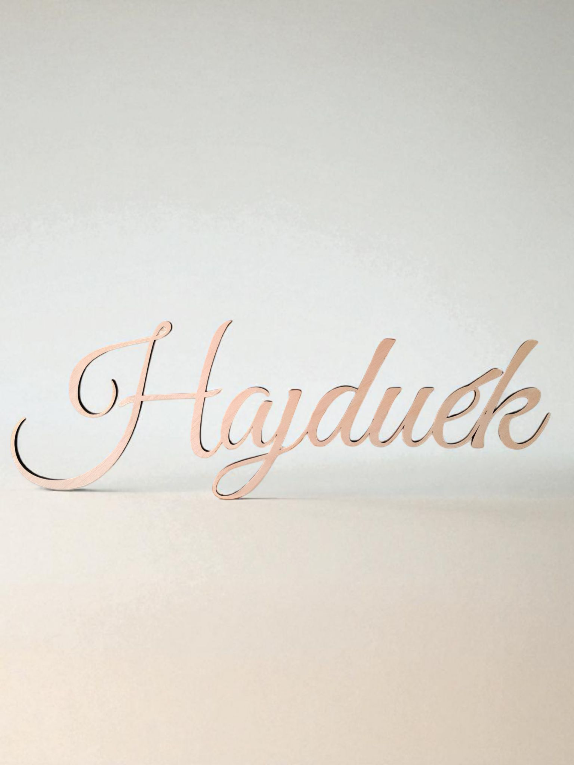 Ez az egyedi, kézbe vehető névfelirat a házaspár vezetéknevét jeleníti meg elegáns betűtípussal, 6 mm vastag nyír rétegelt lemezből. Tökéletes kiegészítő az esküvői fotózáshoz, köszönővideókhoz, kreatív beállításokhoz – de akár dekorációként is elhelyezhető az ünnepi asztalon.