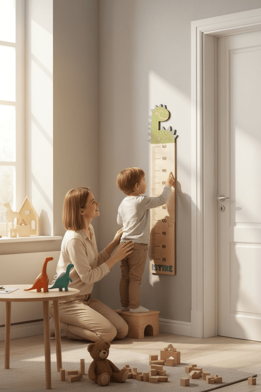Magasságmérő – Unikornis vagy dínó mintával, amely játékosan őrzi a kicsik növekedésének minden centijét
