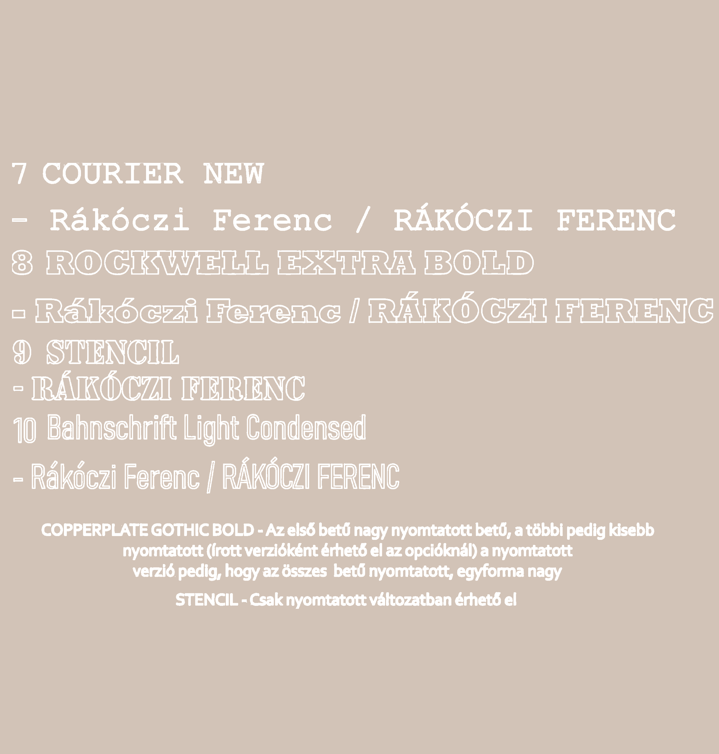 | Széchenyi utca 24. | Copperplate Gothic Bold |
