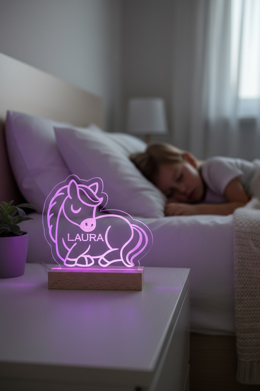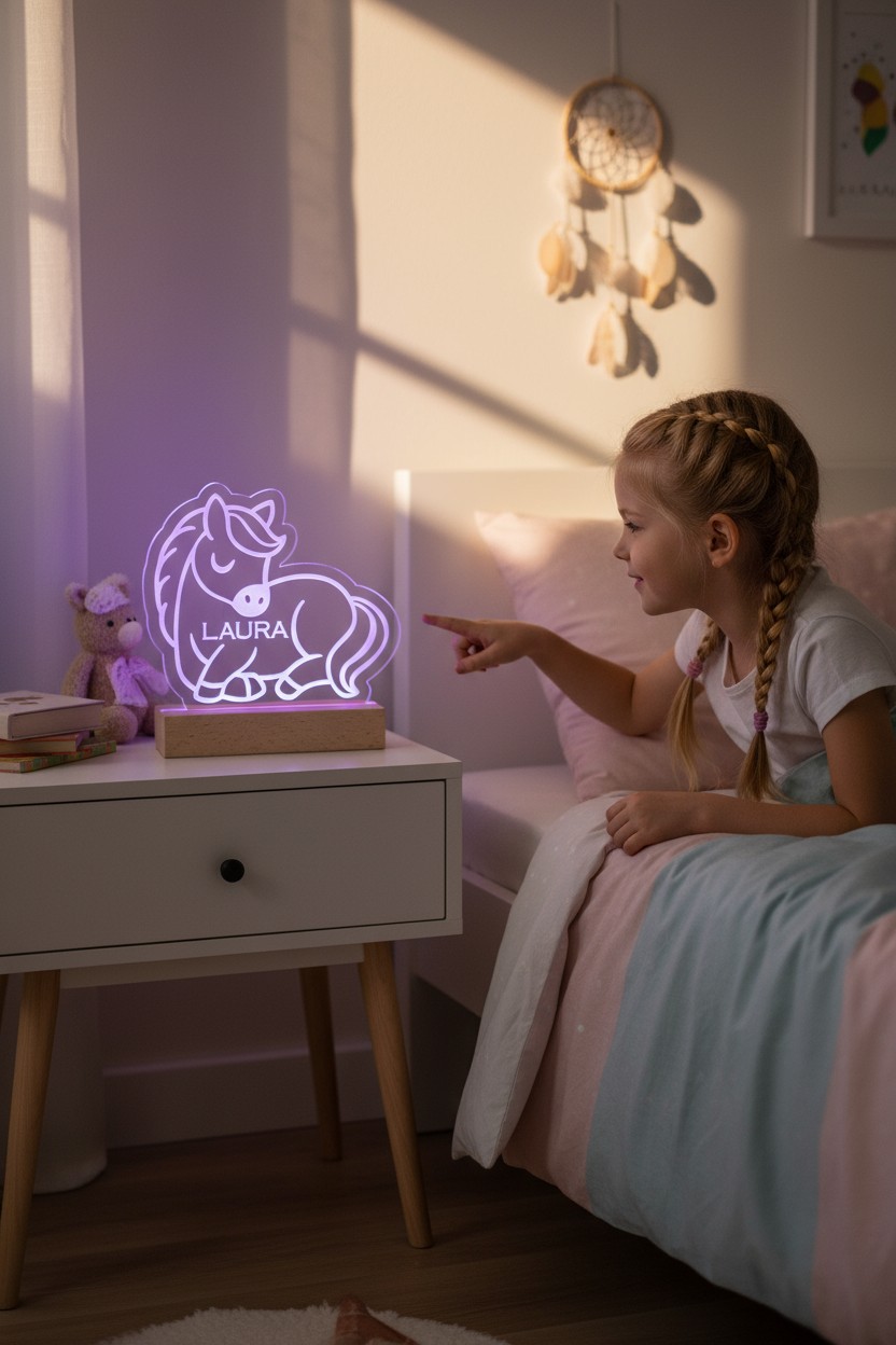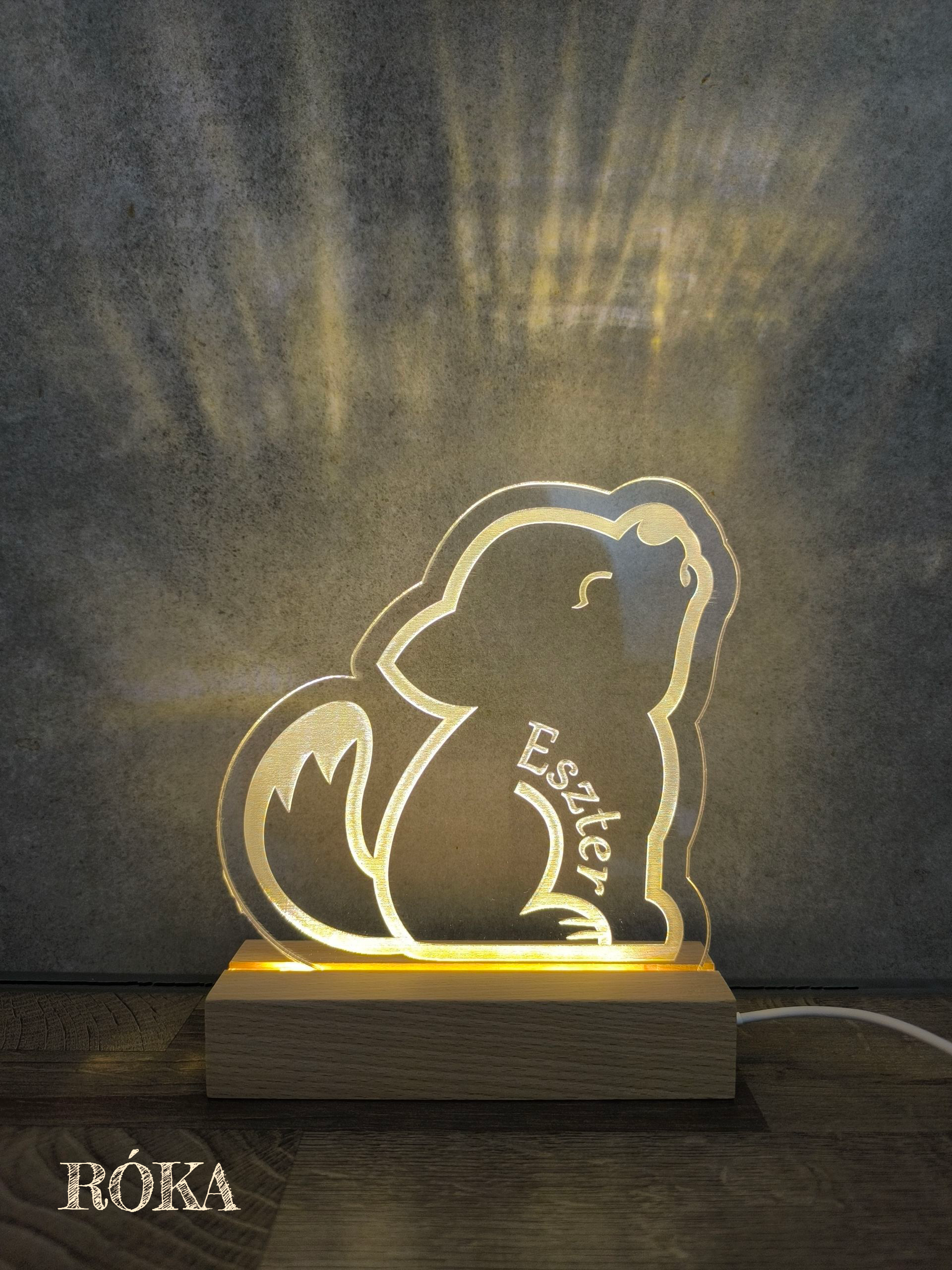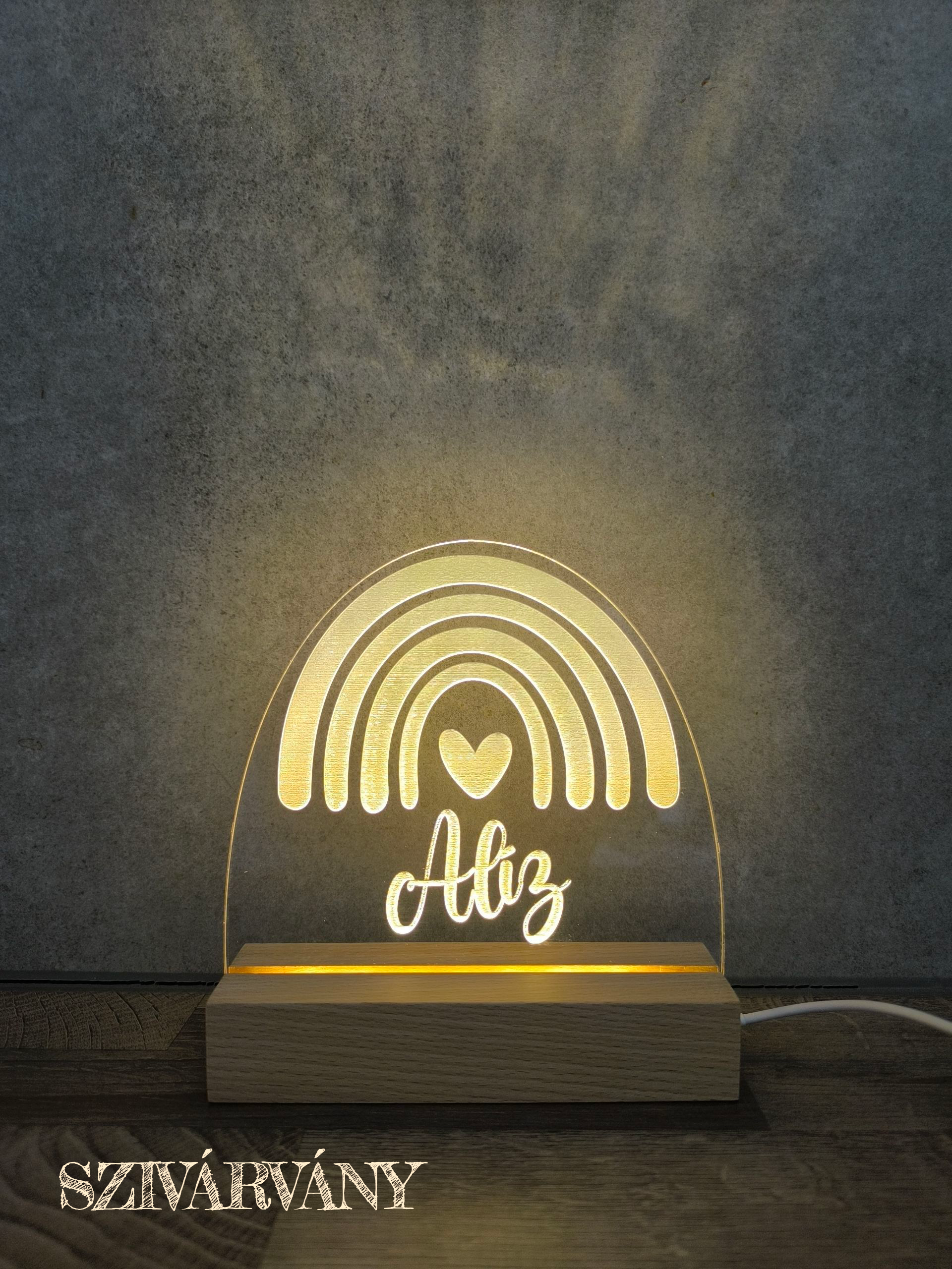 Ez a lámpa nemcsak egy kedves dekoráció, hanem személyes, névre szóló emlék is, ami minden este mosolyt csal a gyermek arcára.