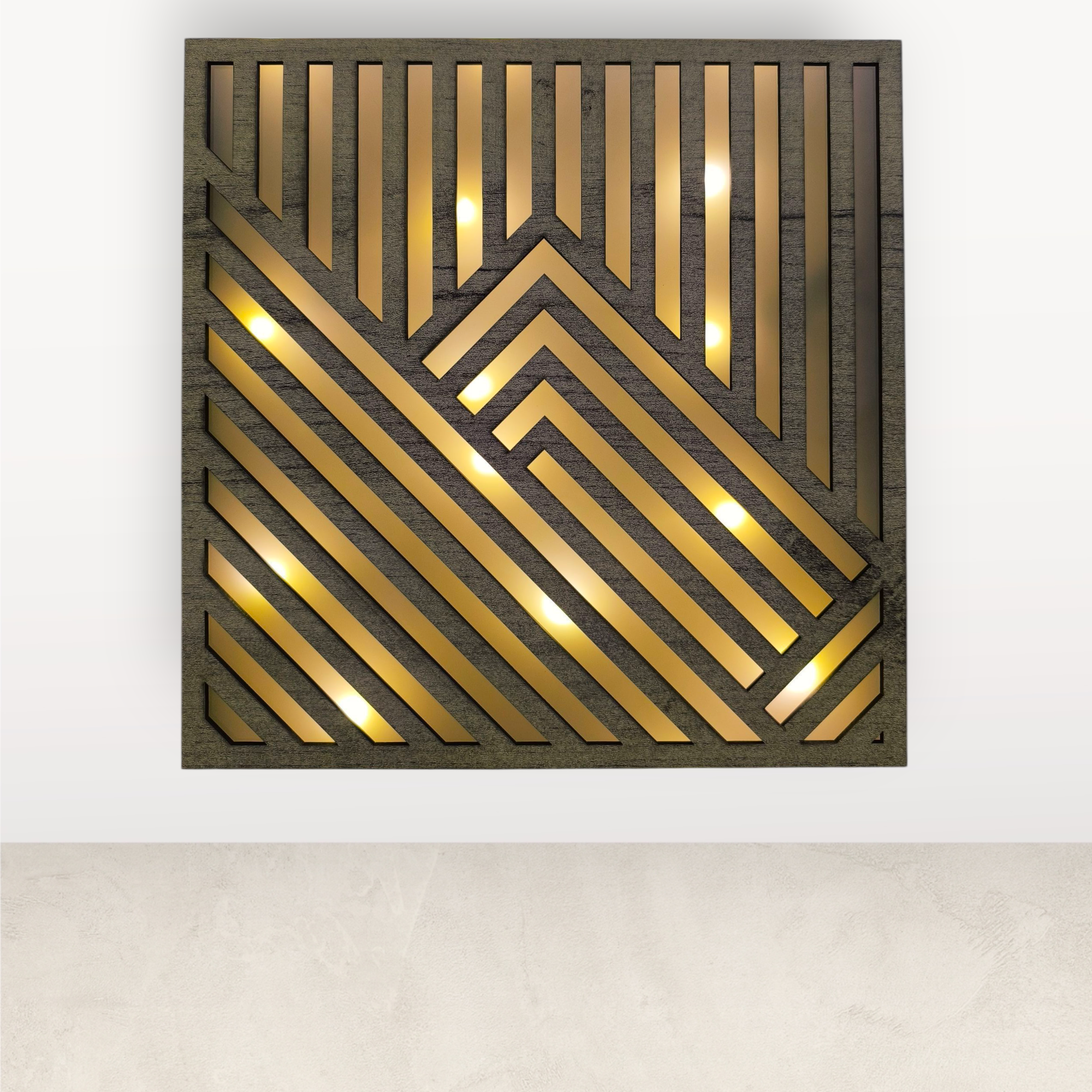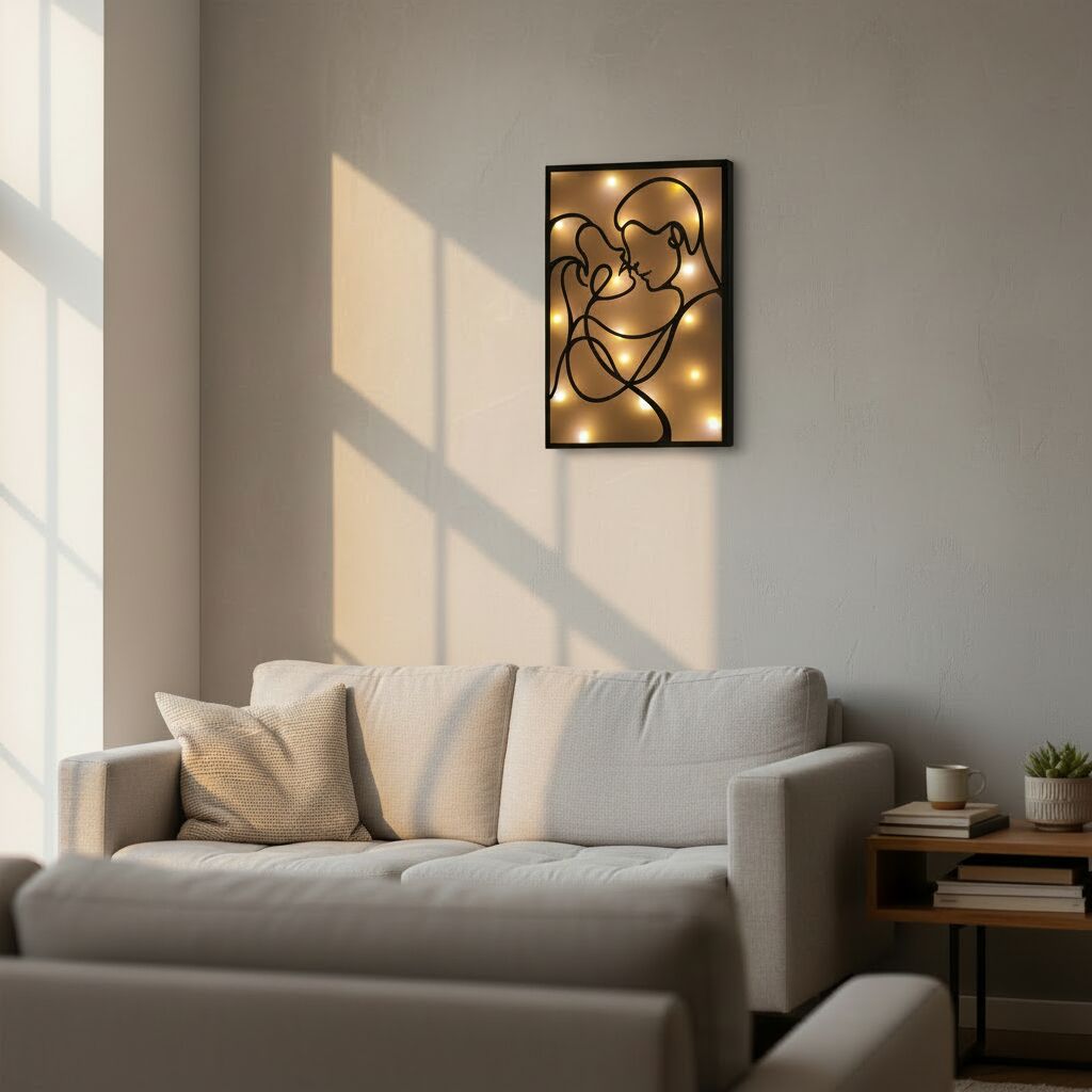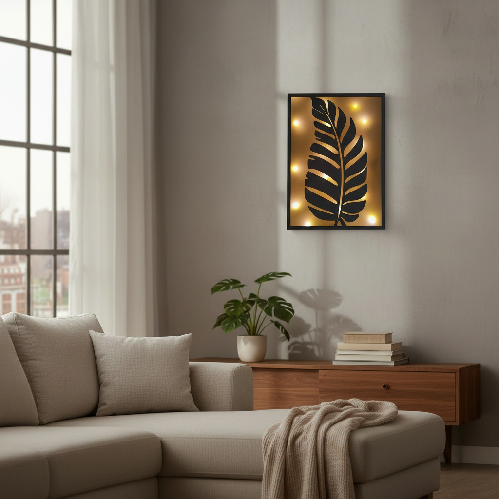 Ez az elemmel működő világítós falikép a letisztult formák és a meghitt fény találkozása.