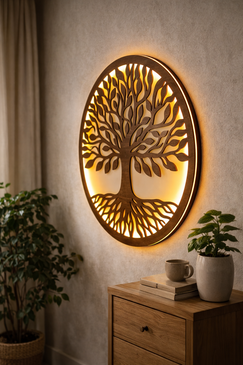 A világítós falpanel nem csupán dekoráció, hanem a tér hangulatának meghatározó eleme. A precízen kivágott vonalrajz mögött elhelyezett LED szalag lágy, egyenletes fényt ad, amely kellemes hangulatvilágítást teremt nappaliban, hálószobában vagy előszobában.